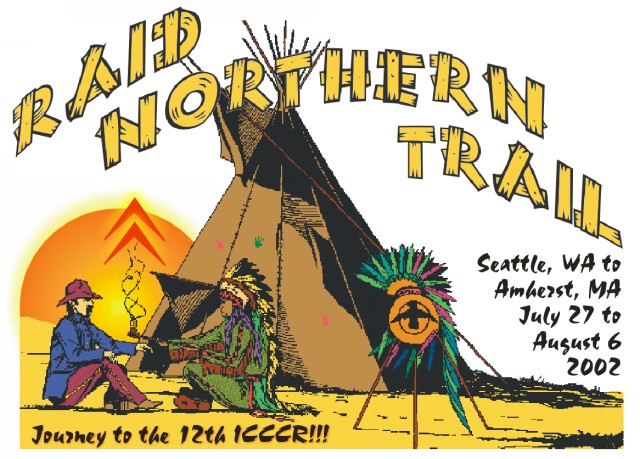 Raid Northern Trail will start in Washington on two different dates; a pre-raid trip around beautiful Washington State starts on Saturday July 20th, and the main departure is on July 26th, 2002. The pre-Raid trip is an option especially for those foreign visitors who are curious about our volcano and earthquake-ridden locale, although everyone is welcome for this option. The main Raid starts at a Departure Party to be held Friday the 26th at the Kaupat Ranch near the mountain village of Cle Elum, 78 miles east of Seattle.